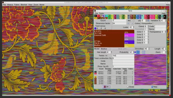 - Edición interactiva: modificación de la tela como patrón de hilo, hilo, color, regulador, pliegue, densidad variable es inmediatamente visible en la simulación de tela