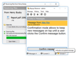 O messenger oferece suporte a mensagens de rich text, incluindo links, formatação de fonte e cor, emoticons e pode receber arquivos e diretórios do servidor de IM e de outros usuários. Você pode obter mensagens urgentes ou ativar o modo de confirmação no servidor de mensagens instantâneas que abre o programa quando uma mensagem é recebida e a mantém visível até que o usuário clique no botão Confirmar mensagem.