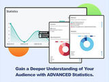 • Obtenha uma compreensão mais profunda do seu público com estatísticas detalhadas, além do rastreamento integrado do Google Analytics e do Facebook Pixel.