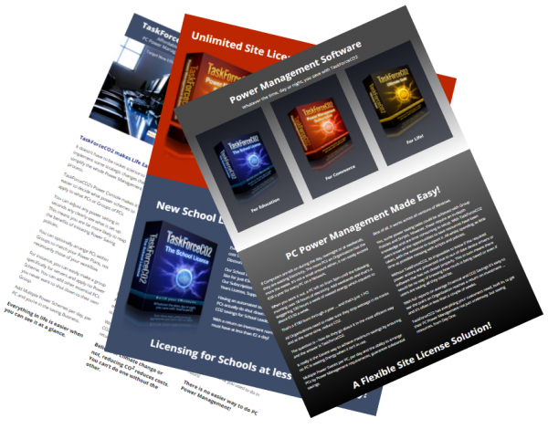 Ayude a los usuarios finales a lograr que la eficiencia en la administración de energía de la PC tenga un gran comienzo, sin importar cuántas PC tengan en su red. Ya sea una pequeña red de 5 PC o 1000 PC, dejarlos encendidos durante la noche aumenta los gastos generales, aumenta las emisiones de CO2 y puede representar una amenaza y un peligro para la seguridad. Energícelos de forma segura con TaskForceCO2.